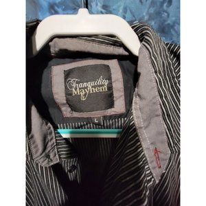 Men's black Tranquility mayhem button-up shirt.