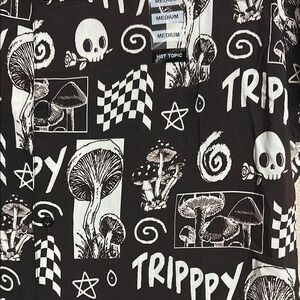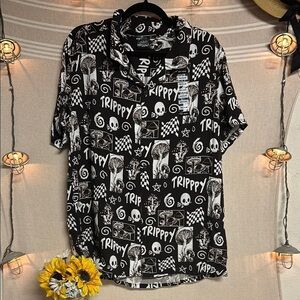 Black and White Casual Button Down Shirt with Gothic Print