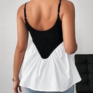 Black and White Casual Women's Contrast Color Deep V-Neck Cami Top