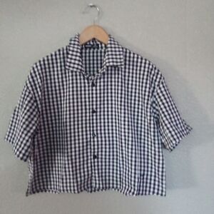 Stylish black and white checkered shirt with short sleeves. Perfect for casual wear.