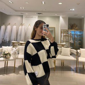 Super comfortable Black and White checkered sweater with bishop-like sleeves. Shane Sweater.