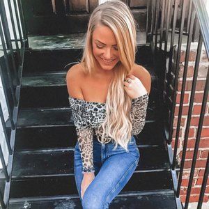 Black and white off the shoulder, sheer cheetah print bodysuit worn once!