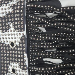 Stylish black and white cow print fringe skirt perfect for any occasion. Add a spark to your wardrobe with this eye-catching piece. NWT AND IN EXCELLENT CONDITION!
