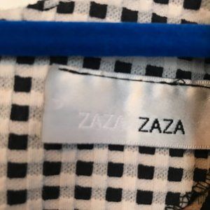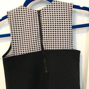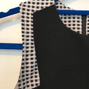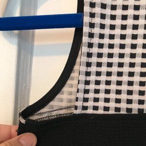 This is a unique black and white sleeveless top that fits normal on a smaller person and more of a crop top look for someone a bit taller. It's a bit of a crepey material (comfortable) and has a zipper going down the back. Very Janelle Monae-y. Perfect condition. Maybe wore it once or twice. I outgrew it.