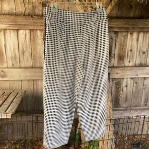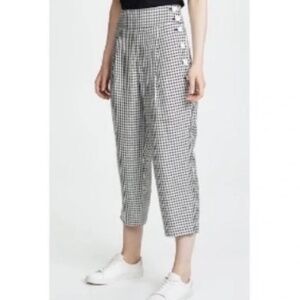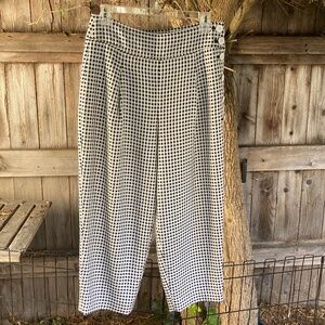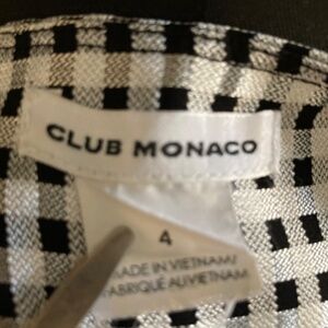 Black and white plaid Club Monaco cropped pants in excellent condition. Side white buttons and high waisted, size 4. Fabric has a slight sheen to it. No care tag, I suggest dry clean or gently hand wash and reshape flat to dry. #plaid #cropped