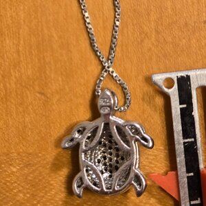 This turtle is really cute. It has black diamond chips on his body outlined by white diamond chips to give it definition.