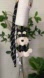 Charming black and white dog keychain with a cream holder. Perfect for adding a playful touch to your keys.