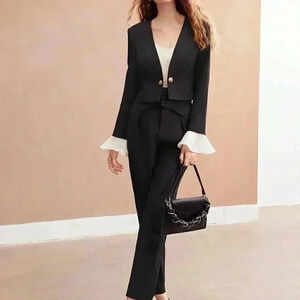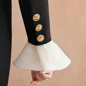 Black and White Elegant Women's Woven Contrast Ruffle Cuff Jacket