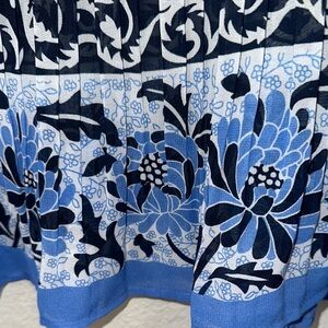 This relaxed tunic top features a striking black and white print with embellished details. The 3/4 sleeves add a touch of elegance, making it perfect for casual outings. Its lightweight fabric ensures comfort and style throughout the day.