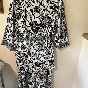 Elegant black and white floral kimono and pant set. Perfect for lounging!