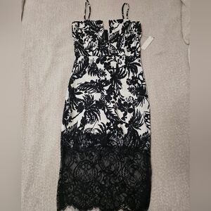 Elegant black and white floral dress with lace detailing. Perfect for special occasions. New with tags JLux Label JAIDE