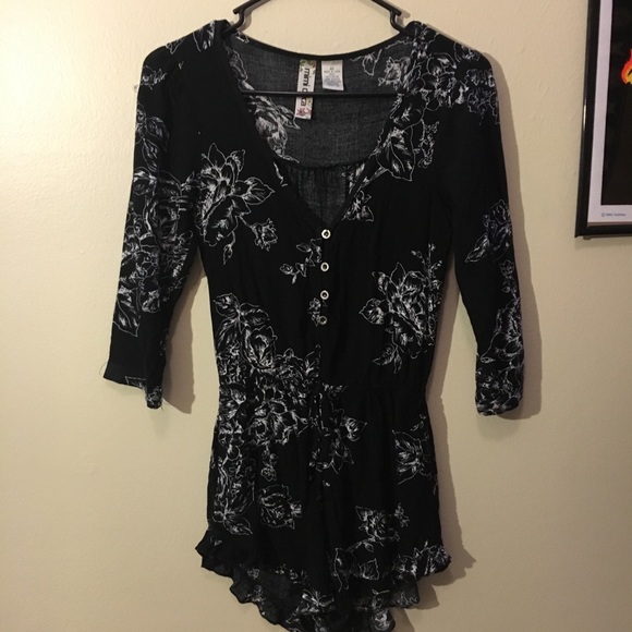 Black and White Floral Romper