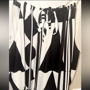 Black and White Geo Print Handkerchief Hem Maxi Dress Express Size Medium