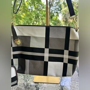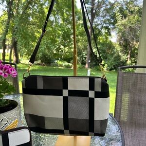 Black and White Geometric Crossbody Bag- and Wallet.