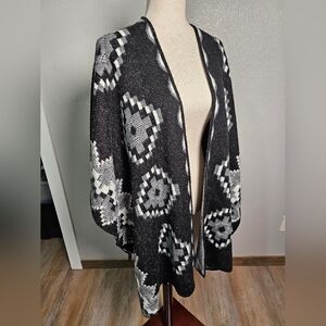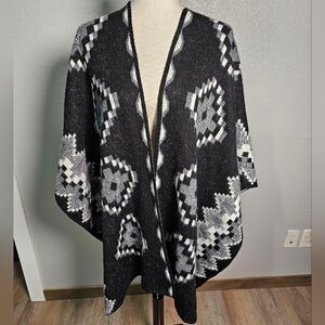 Ruana Shall Wrap Poncho Neutrals Geometric Western One Size Fits all