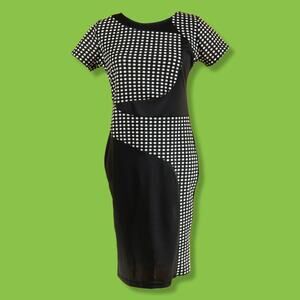 Black and White Gingham Abstract Midi Sheath Dress Short Sleeve, XL