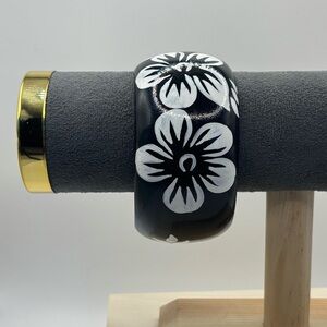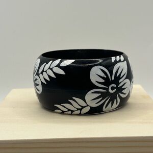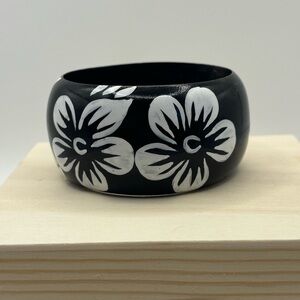 Black and White Hand-Painted Floral Wood Bangle Bracelet