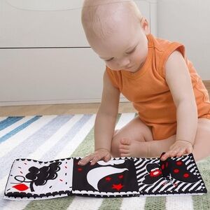 This magic black and white baby toy set comes with crinkle paper and bi-bi sounder hiding in the pages, a flower is hidden under the 3D butterfly wings, baby-safe reflection mirror help babies know themselves. Baby toys 0-6 months will kept baby busy by the lovely pattern, and enjoy the fun of learning while playing.