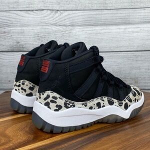 These high-top sneakers feature a primarily black upper made from textured material, complemented by a bold animal print midsole with black spots on a white background. The chunky silhouette and rounded toe design make them a stylish choice and anyone. Excellent used condition! Feel free to ask questions. :)