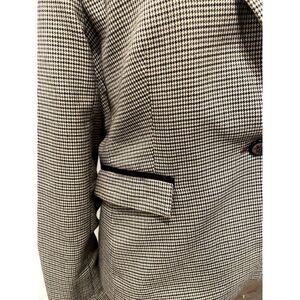 Elevate your wardrobe with the Black and White Houndstooth Blazer. This classic piece offers a sophisticated look, perfect for any occasion.
