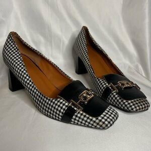 Black and White Houndstooth Heeled Loafers Size 8.5