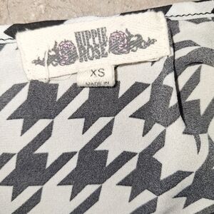 Stylish black and white houndstooth top for women. Perfect for a chic and modern look.