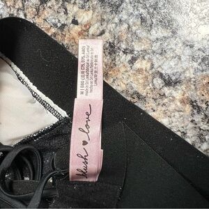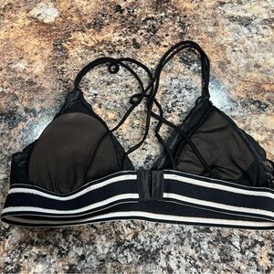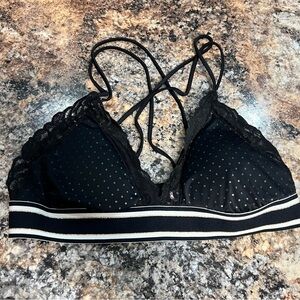 Stylish black and white lace bralette set. Features delicate lace details and floral patterns.