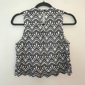 Black and White Lace Crop Top by TopShop Size 6P Fits like XS