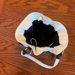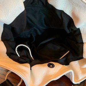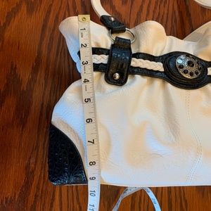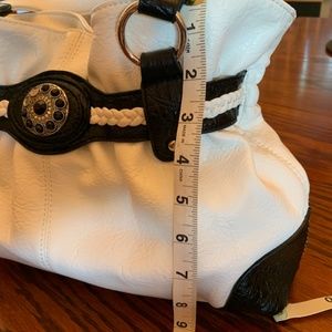 This beautiful black and white leather handbag with silver-toned hardware is great for any summer occasion. Will be absolutely stunning with that perfect outfit.