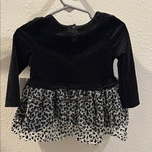 This chic blouse features a sleek black top paired with a playful white leopard print bottom, creating a striking contrast. The long sleeves and flared design add a touch of elegance, making it a versatile piece for any occasion.
