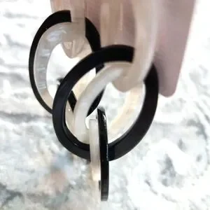 Black and White Link with Marbeling Statement Earrings