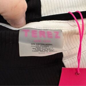 TEREZ NWT BLACK AMD WHITE SPLIT bodycon Ribbed Black and White Midi Cruella