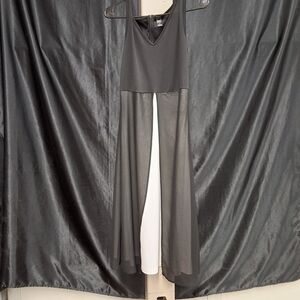 This elegant maxi dress features a sophisticated black and white color scheme, perfect for any occasion. The dress boasts a flowing silhouette that drapes beautifully to the floor, offering both comfort and style. Crafted from a soft, fluid fabric, it ensures a graceful and timeless look.