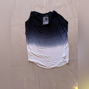 This top features a striking black and white color scheme in a classic muscle tee design. The tank top style is enhanced by a textured fabric, adding a unique visual and tactile element. Perfect for casual wear, this piece combines comfort with a modern aesthetic.young young fabulous and broke top size M Young Fabulous & Broke" women's top in size Medium, featuring a blue ombre design that transitions from dark blue at the top to white at the bottom. The top has a V-neck and a loose, flowing fit, likely made of a soft, lightweight material such as rayon or a rayon blend, which is common for this brand. The label "YOUNG FABULOUS & BROKE" is visible on the tag. Based on available listings, similar tops are described as having a cowl neck or drape neck and are often made with a tie-dye or ombre pattern.