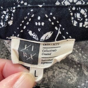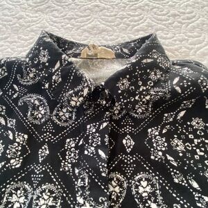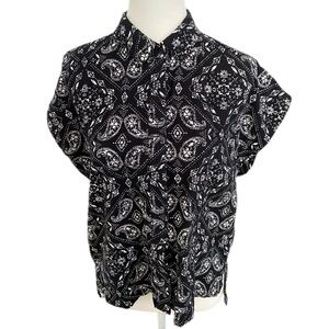 Black and White Paisley Print High Low Cap Sleeve Button Up Shirt Size Large
