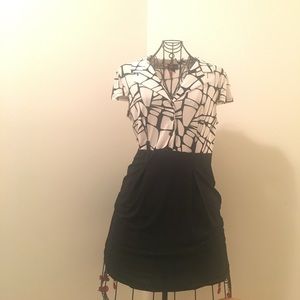 Black and White Pattern Dress. Three buttons - Sleeves - Knee length