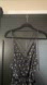 Stylish black maxi dress with white patterns and lace trim. Perfect for any occasion.