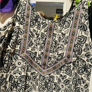 Elegant black and white patterned dress perfect for any occasion. Features intricate designs for a stylish look and is lightweight for summer.