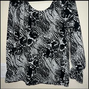 Stylish black and white patterned women's top. Perfect for any occasion.