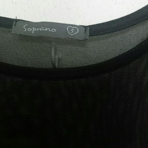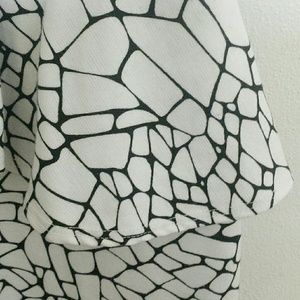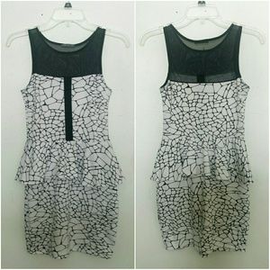 Black & white peplum dress feels comfortable and soft. The top portion by the collar is see through & the bottom portion has a peplum style to it, giving you curves. This dress hugs your body and it moves with you.