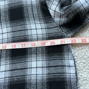 Black and White Plaid Long Sleeve Button Up Small. Preowned and in excellent condition. Button up, collared, button closure at wrist. Please see all photos. Approx measurements in pictures.