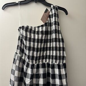 Stylish black and white plaid one shoulder dress. Perfect for casual outings. Flowy my and so pretty. New with tags. Women’s size medium.