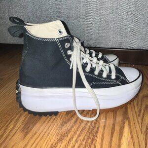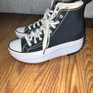 Step up your style with these classic black and white platform Converse! Featuring the iconic Chuck Taylor design with a modern elevated sole, these sneakers add the perfect mix of comfort and edge to any outfit. Great for casual looks, going out, or adding height without heels. Worn but still in good condition. Size 8.