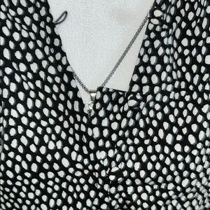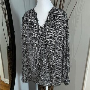 Stylish black and white polka dot blouse. Perfect for any occasion.