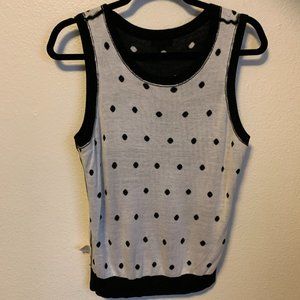 Black and White Polka Dot, Crew Neck Knit Tank Top Vest, Halogen, 1 Petite