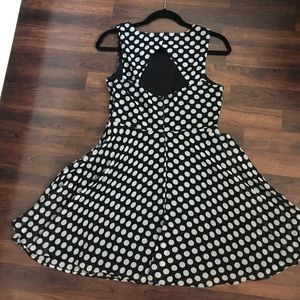 Super cute polka dot dress with keyhole back! Has no signs of wear and has only been lightly worn. The length measures about 32 in from shoulder to hem. Has a hidden side zipper and 3 button shoulder opening for easy on and off.