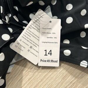 Stylish swimsuit featuring a classic black and white polka dot design. Perfect for fun days at the pool or beach.