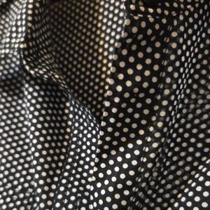 Stylish black and white polka dot top for women. Perfect for any occasion with its classic design and comfortable fit. *This blouse is missing two buttons. One at the shoulder and one at the very top, near the neck. It is discounted to reflect this. Please see all pictures.