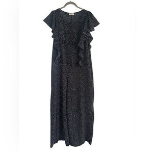 Black and White Polka Dot wide leg jumpsuit Max Studio flutter sleeve belted