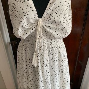 Black and White Polkadot Gathered Sleeveless Maxi Dress Floryday LARGE